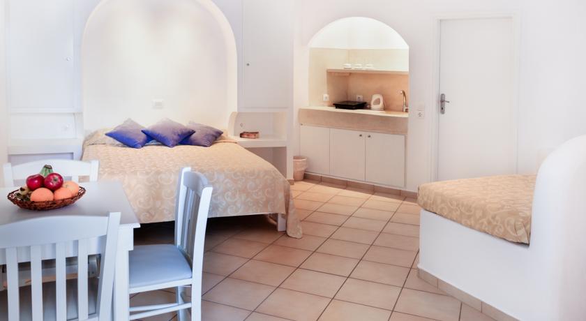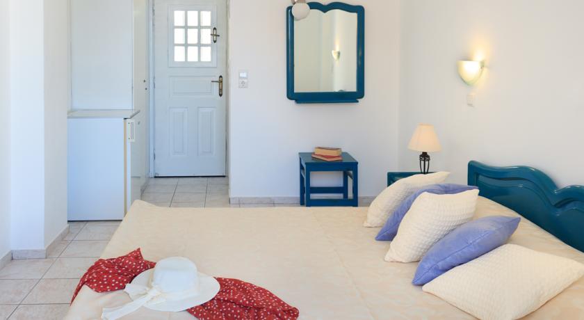 Местоположение: разположен е на 30 метра от плажа и на краткo пешеходно разстояние от оживения център на Периса. На 13 километра от Периса се намира град Фира, столицата на Санторини. На 200 метра от хотела има автобусна спирка. В хотела: плувен басейн с бар, предлагащ освежаващи коктейли; безплатен Wi-Fi има в общите части. В стаите: климатик, самостоятелен санитарен възел, хладилник, сешоар и сателитна телевизия.