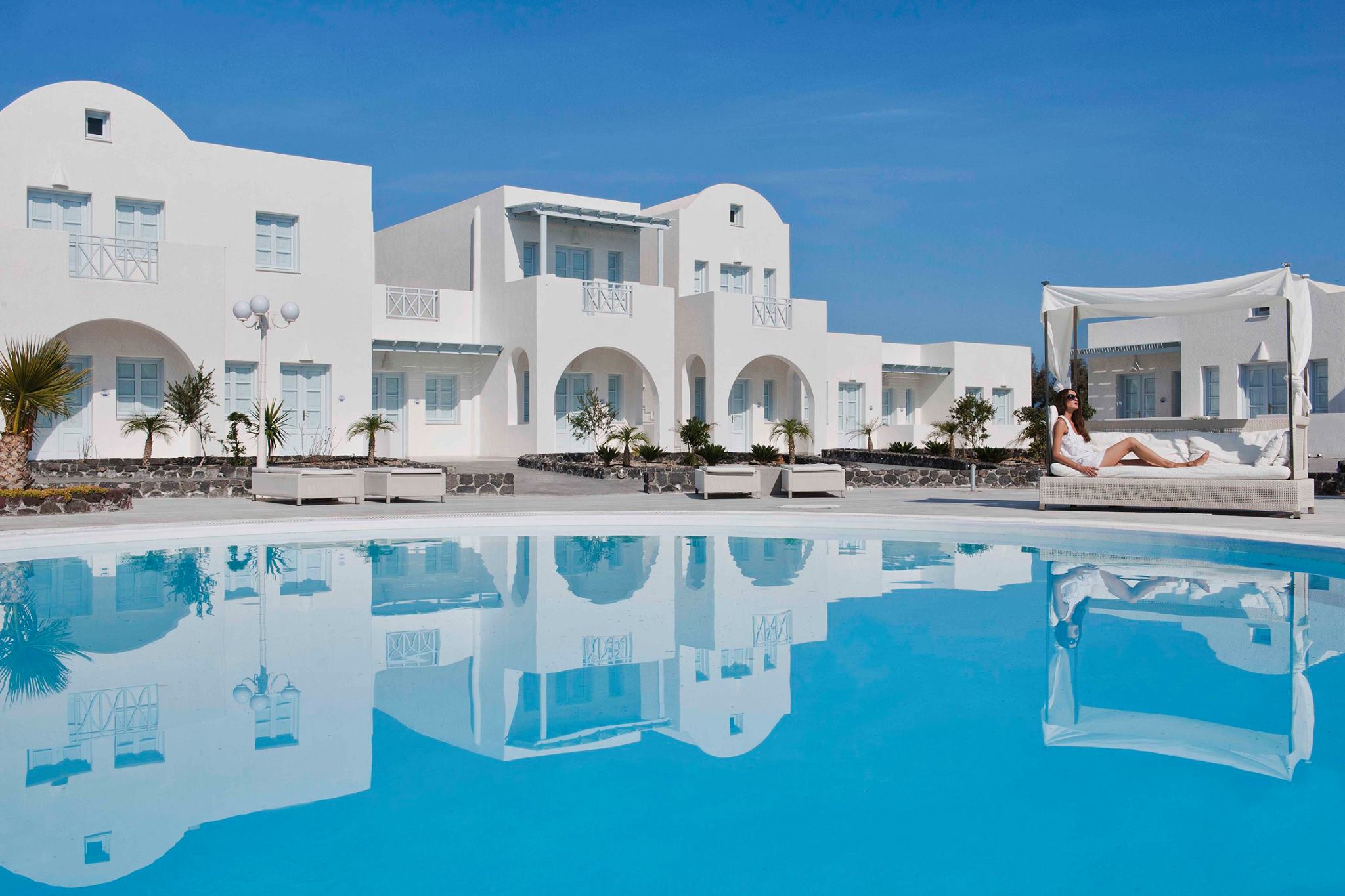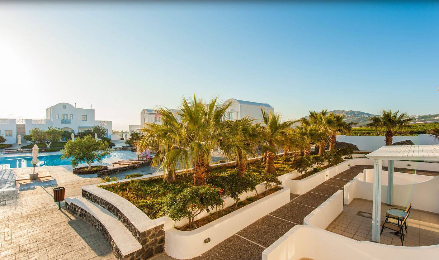 Местоположение: на 450 метра от сърцето на столицата Фира. Летището е на 4 км разстояние. В хотела: Голямо разнообразие от услуги и съоражения са на разположение на туристите. Хотелът разполага с конферентна зала, 4 басейна, детски басейн, паркинг, бар край басейна, снек бар, ресторант, зала за закуска, зала с телевизор, градина, малък параклис, WiFi. Рецепцията е 24-часова, предлага се рум сървис, пералня и гладене срещу доплащане. В стаите: всички стаи и общите части на хотела са наскоро реновирани и следват традиционната архитектура на острова. Стаите разполагат с климатик, малък хладилник, телевизор, баня с тоалетни принадлежности и сешоар, Wi-Fi.