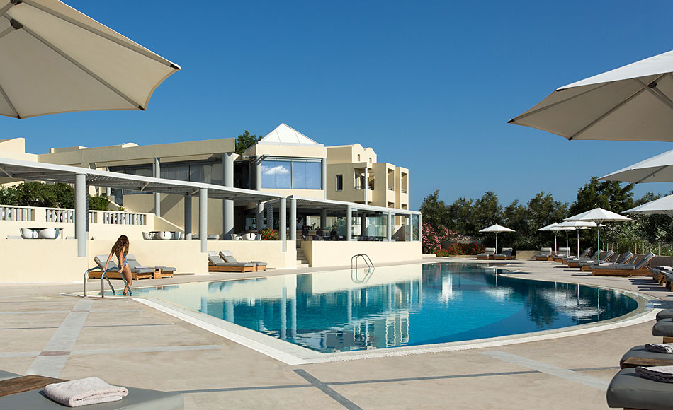 Местоположение: разположен е в столицата Фира, на 500 м от нейния център. На 7 км се намира летището, а на 9 км е пристанището. В хотела: предлага голямо разнообразие от съоръжения, които включват два ресторанта, бар на басейна, закрит лоби бар, три сладководни басейна, единия, от които е отопляем, детски басейн и детска площадка, две конферентни зали, СПА център, който включва: сауна, джакузи и напълно оборудвана фитнес зала. В стаите: оборудвани с климатик, сателитна телевизия, телефон, малък хладилник, баня със сешоар и тоалетни принадлежности.