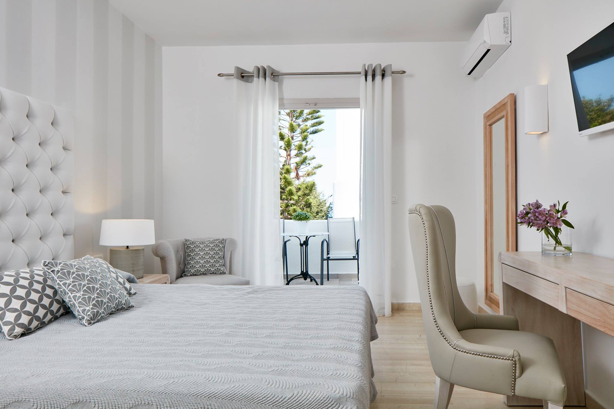 Местоположение: разположен е в селището Фиростефани, в близост до централната част на столицата Фира. На пешеходно разстояние от величествената калдера и от близките ресторанти. Хотелът: предлага басейн и фитнес център с хидромасажна вана и сауна. Всички климатизирани стаи се отварят към балкон с изглед към добре поддържаната градина или Егейско море. Всяка е оборудвана със сателитна телевизия, минибар, баня с душ тип тропически дъжд или вана и сешоар. В целия хотел има безплатен Wi-Fi интернет.